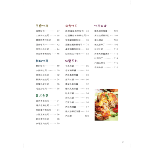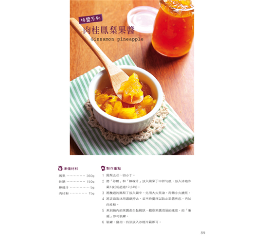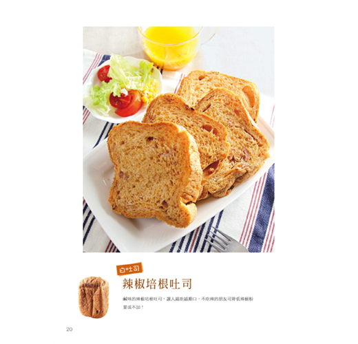 在某個瞬間,被麵包出爐時陣陣芳香所吸引的偶然經驗相信許多人都曾有過,美食所激發的味覺渴望似乎更能勾起人們內心潛藏的微小幸福,然而食安問題卻讓如此美好感受,漸漸化成擔憂與疑問。 《麵包機烘焙趣》是一本專為國人企劃編寫的食譜,以不需要烘焙基礎為考量,選用容易取得的食材,只要依照食譜將材料依序投入麵包機,就可以靜待麵包出爐!書中利用白吐司、全麥吐司、豆漿吐司、鮮奶吐司、義式香草、酒鬼吐司等六大系列配方,變化出36款美味吐司。為了增加多層次的豐富口感,更提供了13種果醬、抹醬的製作方法,鹹甜皆宜。此外,更有9道利用吐司延伸出來的創意料理,準備讓香氣全面觸動你的嗅覺神經,讓美味佔領你的胃! 希望立即享受麵包出爐時的濃郁香氣嗎?想要食用美味與健康兼具的吐司料理嗎?預期看見整桌幸福所帶來的滿足笑顏嗎?不曾學過烘焙滿懷期待卻又害怕失敗嗎?《麵包機烘焙趣》就是你的最佳選擇!