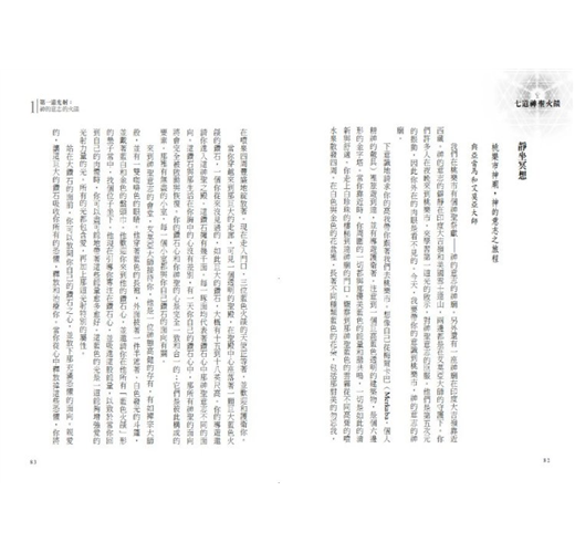 透過桃樂市亞當馬、每一道火燄的霍汗大師、大天使、以羅欣們及許多宇宙導師們的協助,書中詳列了每一道光射(火燄)中神的屬性與行動、該道光的大師、他在人類的化身、僻靜處、從心傳遞的訊息、亞當馬與大師的講座、禱詞、冥想。每一則訊息與講座都非常精彩,帶給我們許多新的教導,並釐清諸多疑惑。禱詞,非常實用,強化我們與神聖火燄的連結。冥想更是珍貴,導引我們進入桃樂市神聖火燄的神廟,親身體驗每一道火燄的愛與其特別的屬性,在其中得到淨化與提升。