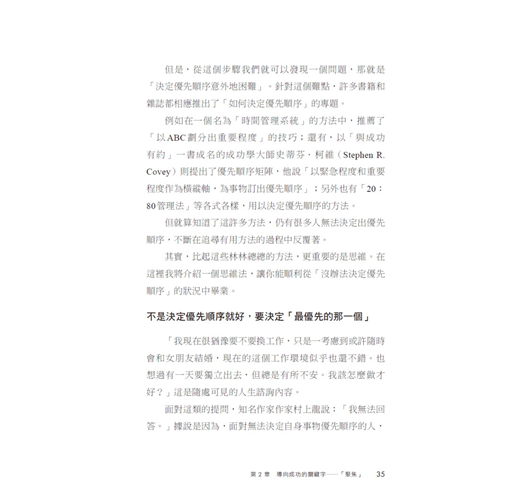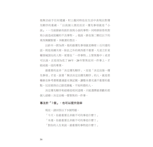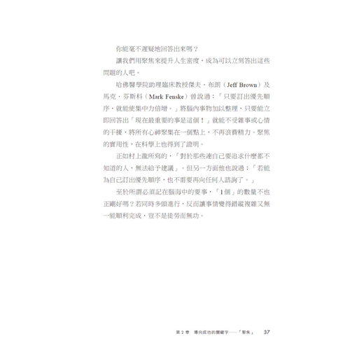 同樣地,杜拉克也將聚焦視為提升工作效率的不二法門,他曾說過:「專注在最重要的事物上。」這句話,對活在現代的我們更具有重大意義。