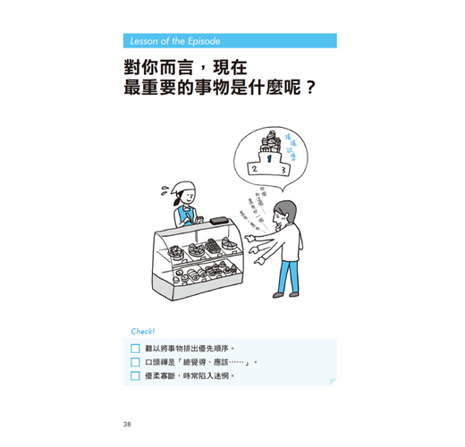 說回工作小心謹慎但速度慢的人,便是弄錯了應該小心的方向,或是連無關緊要的部分都卯足全力。雖說工作上兢兢業業的態度相當重要,但這兢兢業業指的是針對軸心關鍵,只要集中全力在軸心關鍵上,其餘較零碎的非關鍵部分自然可以被帶起運行。