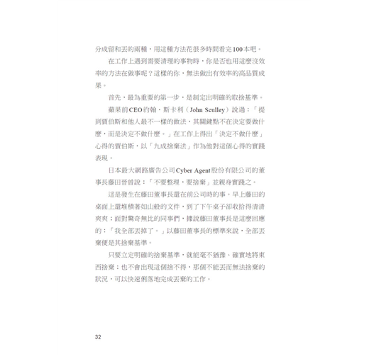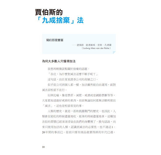 「就算擁有一百分的最強武器(技巧),無法在工作上為你創造出成果的全都是垃圾。除了那些必要的技術以外,其它的全部捨棄掉!」