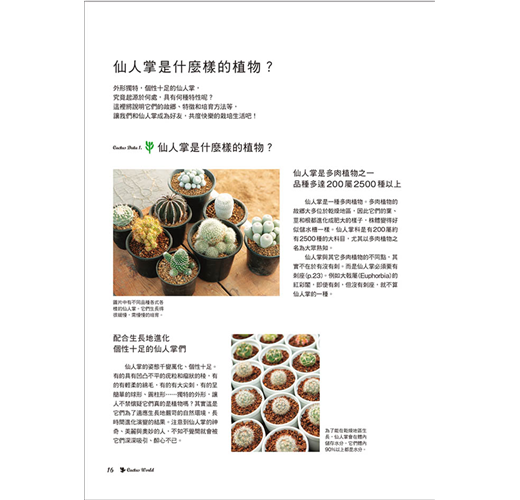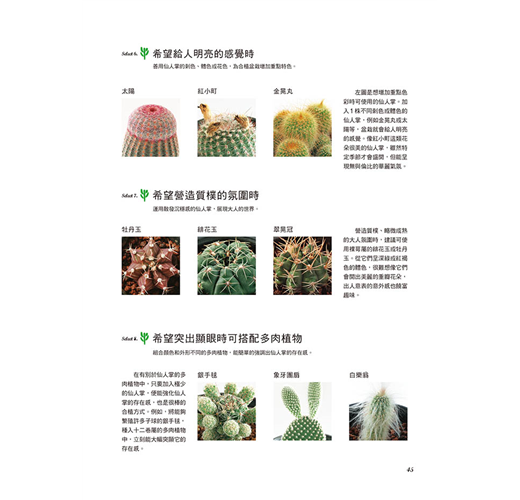 現在,就從了解仙人掌開始,好好地培育出漂亮的仙人掌,再將喜歡的仙人掌合植在一起,讓迷你仙人掌創造出一隅好風景吧!