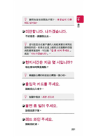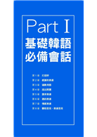 本書分為『Part1基礎韓語必備會話』與「Part2各種場合必備會話」兩大部分。Part 1囊括了『打招呼、感謝、道歉、提問、請求、邀約、情感、意見表達』,這部分是基本會話中的基本,屬於高頻率使用的部份;Part 2收錄了『旅行、校園、商場、生活、醫院、交通、購物、外食、電話表現』,各地點、各場合的會話都收錄於此,而且分類超詳細!例如,醫院篇又細分為「前往醫院、在掛號台、描述症狀和16種常見疾病症狀」,連留學生都驚訝,這麼簡單的句子,為什麼當初沒想到!