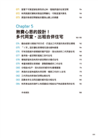 居家空間,會因應家庭人口、每位成員的興趣嗜好、以及家族成員年紀分布而有不同的狀態。讀者可依據自己的需求來尋找相關案例,看看設計師是如何巧手打造出最「適切」的生活空間。