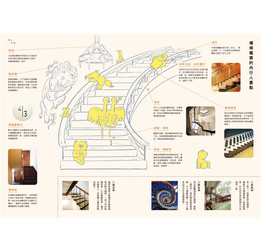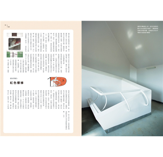 ․樓梯魔力解說:和紙創作家夜長堂、人氣攝影家西岡潔等日本創作者為樓梯愛好者量身打造,讓尚未發現樓梯魅力的人驚豔的一本書,一座座樓梯中可見時代的變遷,也是一則則建築的故事。