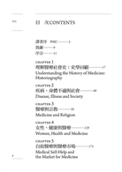 全套書分成三卷([卷一]醫療與常民、[卷二]醫學與分化、[卷三]醫療與國家),以重要的議題為經,以大量的歷史研究成果為緯,試圖在堅實的史料基礎上,將常見的理論、概念與史學潮流檢驗、琢磨與修正。那將促使我們思索「進步」的意義,對「專業權威」進行批判性的思考。豐富我們對於醫學史的認識,也讓讀者意識到醫學的權威並非不證自明,醫學的改革反映了每個時代。