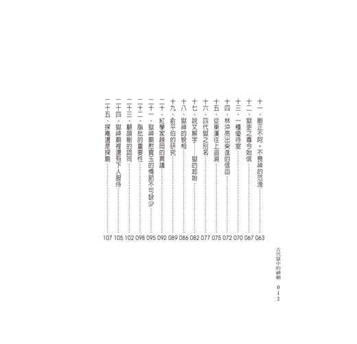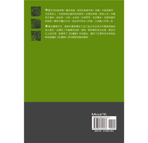 本書以隨筆形式,娓娓向讀者講述了自三皇五帝以來之中國獄神廟的悠久歷史。另講述了中國獨有的獄、獄神、獄神廟於政治社會、歷史文化上的作用。更運用了《紅樓夢》中的脂批,講評了紅學研究中常被忽略與誤讀的《紅樓夢》與中國獄神廟的關係。