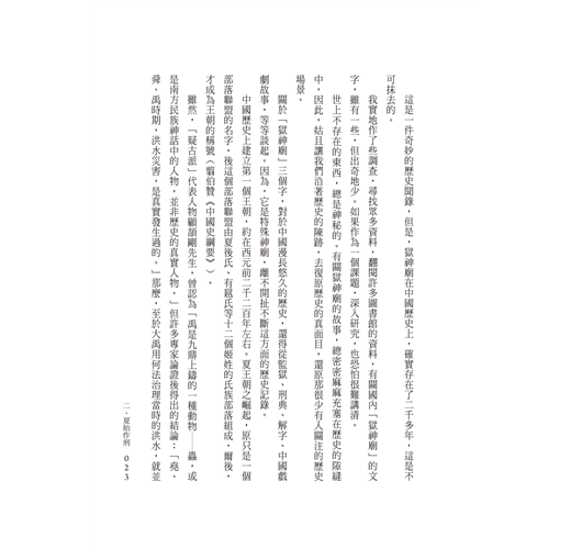 雖然,「疑古派」代表人物顧頡剛先生,曾認為「禹是九鼎上鑄的一種動物―蟲,或是南方民族神話中的人物,並非歷史的真實人物。」但許多專家論證後得出的結論:「堯、舜、禹時期,洪水災害,是真實發生過的。」那麼,至於大禹用何法治理當時的洪水,就並不重要,這倒從另一個側面,反映了夏王朝的存在。其實,夏人已經懂得開通溝洫、排洪泄澇,掌握了灌溉和天文的知識。