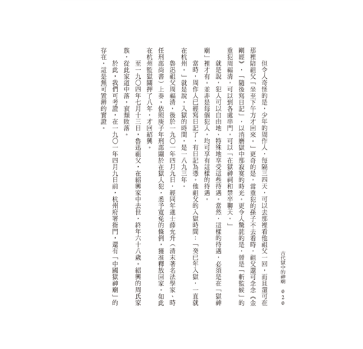 我想,歷史上真正實行的監獄制度,有文字作證的,從文選上講,古代的《尚書》,為我們留下了這樣點滴的記載。