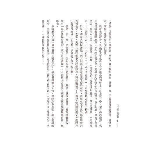 中國歷史上第一個世襲的王國產生了。禹是個關鍵性人物。當時許多部落,服從夏禹的統治。中國氏族家長制的統治,也從此開始。誠如郭沫若所說:「部落不再由選舉產生,世襲的國王、中國氏族家長制出現了。」