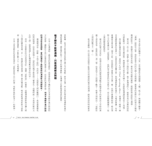但這在以「訊息正確」為重、盛行簡報文化的歐美人士眼裡,非常匪夷所思。他們認為又臭又長的郵件只不過是藉口,郵件內容長,就是歷練和工作能力還不夠的證據。