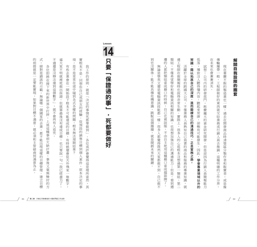 在本書中,我會詳細分享在這段經驗中,自己所學到的「全新思考方式」;同時以商業基礎為本,適應變化多端的國際化時代,實踐在職場、商場上「全新的理所當然」,獲得豐碩的成果。想投機取巧、不堅守商業基本原則,當然會處處碰壁;我也確實感受到,當人在面臨危機時,就會忽略平時認為理所當然的常識,無法好好的處理。
