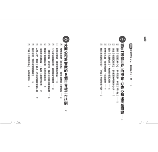 只不過,這個簡單的原則和以往亞洲人心中的「工作準則」有些不同,舊世代的工作方式,會漸漸地不再適用於變化多端的未來。在這本書中,我想告訴各位:先理解「在世界上班」的基本「工作準則」,再激發自己擁有的潛能,才能在這個日新月異、充滿變革的全球環境裡,找到一套生存的方法。