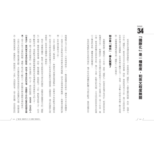 ◎跨出國界的新生存法則「與國際接軌、提升競爭力」,每個人對於「國際化」的定義不同,但不管是認為「英文一定要很好」或是「最好能到一流外商任職」,最重要的就是改變原有的價值觀。不管喜不喜歡,我們都得遵守國際化時代的「新規則」;除此之外,在投身新時代之前,最重要的就是掌握自己在國際間的優勢。透過前日本蘋果CEO山元賢治的三十年外商經驗談,當各位面對未來十年的變動時,每個人都能具備在全球通用的應變力和變動力。