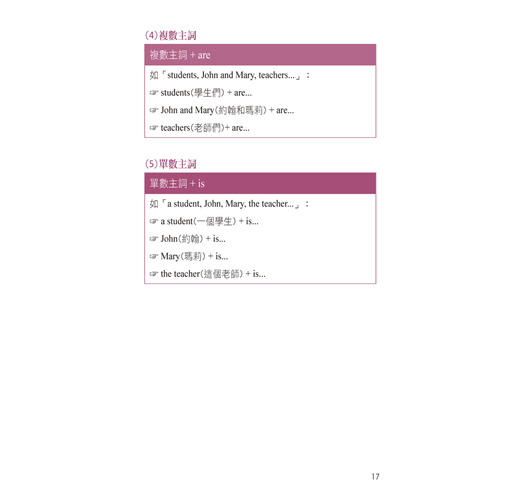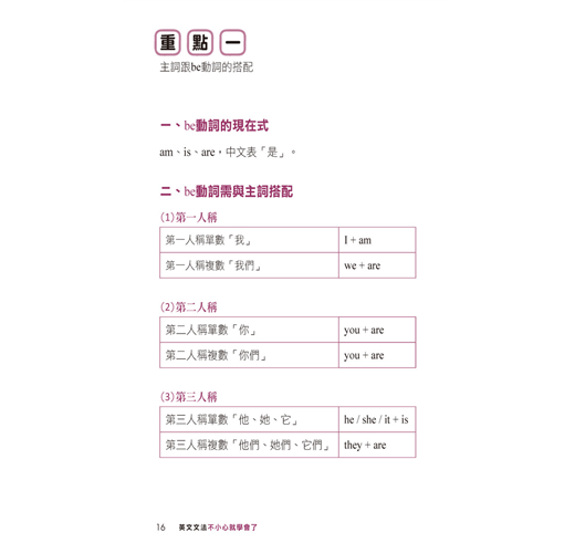 重點一 主詞跟be動詞的搭配 016