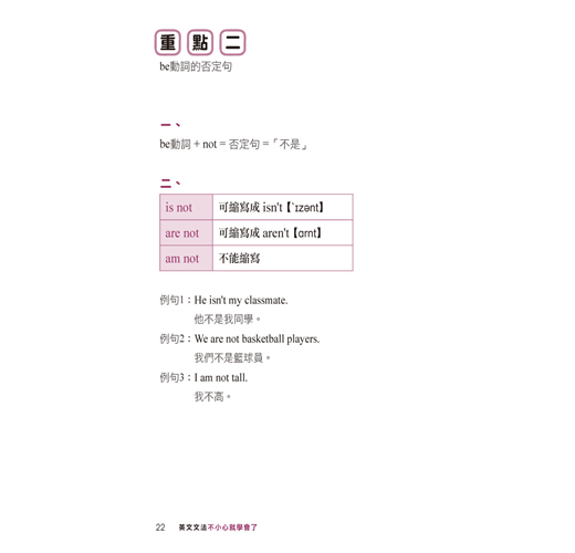 重點二 be動詞的否定句 022