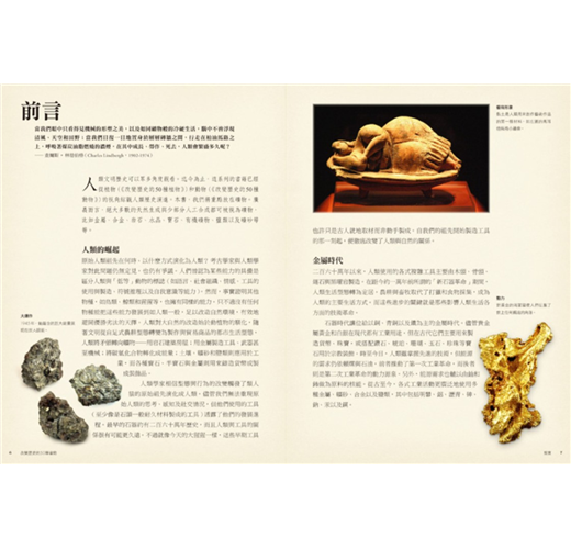 人類文明歷史可以眾多角度觀看。迄今為止,這系列的書籍已經從植物(《改變歷史的50種植物》)和動物(《改變歷史的50種動物》)的視角綜觀人類歷史演進。本書,我們將重點放在礦物。廣義而言,絕大多數的天然生成與少部分人工合成都可被視為礦物,比如金屬、合金、岩石、水晶、寶石、有機礦物、鹽類以及礦砂等等。