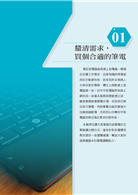 本書為打算購買筆電的您準備了一些選購技巧,讓您避免誤踩地雷,同時也可以把錢花在刀口上,買到CP值最高,最適合自己的筆電。