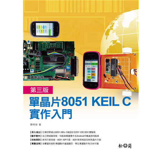 隨著智慧手機或平板改變人們生活習慣,現在已成為家中客廳或房間重要的娛樂工具及行動裝置應用控制平台,各式應用創意功能不斷的出現在生活中。在電腦上的許多應用已經移轉到手機上,為使8051教學更活潑、有趣、能搭配手機應用實驗,以8051實驗板E51配合新的程式碼,可以與手機連線,來做更多有趣實驗,本書進行改版如下: