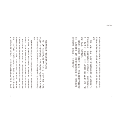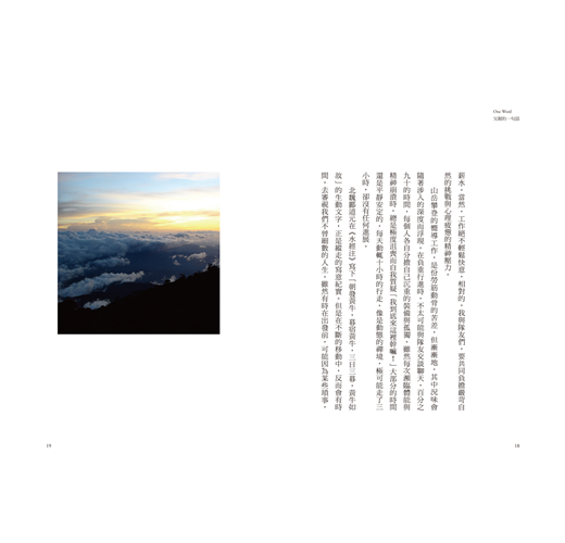 但是,每當我走到生命的分岔口時,面對康莊與崎嶇,我總是選擇了那條箕踞傾倚的山徑而去。年輕時,總是樂觀地認為,隱藏在嶔崎磊落的背後,應該是柳暗花明的人生風景,不一樣的大山大水,不一樣的人生體會。於是,我將小小的夢想收藏在心中某個角落,直到命定的來臨。