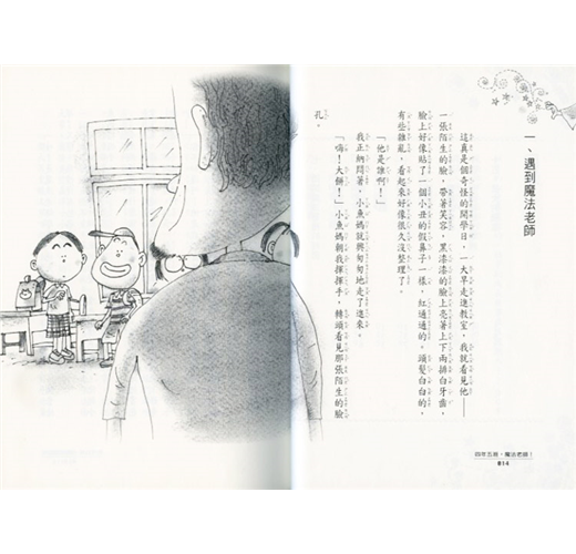 上學期老師交待過,只要教室裡出現陌生人,就要趕快跟訓導處報告。我正準備站起來,走出教室,去找訓導處的老師。上課的鐘聲就響了。這時那個頭髮斑白的魔法老師也站了起來,走到講台上,說道: