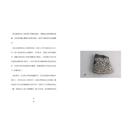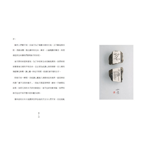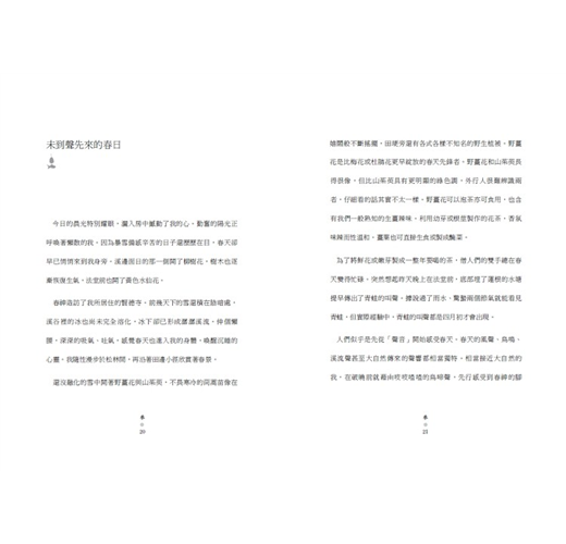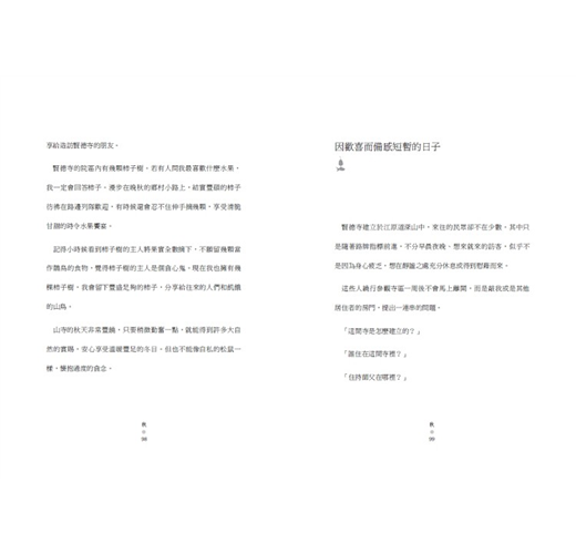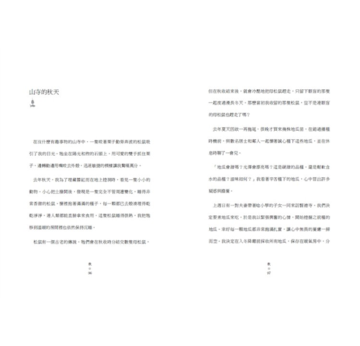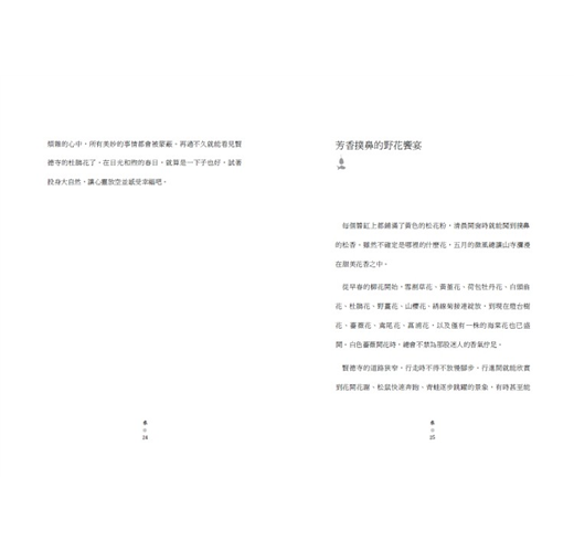 作者在山寺,面對著不同造訪的人們,看著每個人所提出各式雜難,以貧苦山寺來戲稱,但卻自在的面對這一切。他以春夏秋冬四季層迭不拘的變化,像似說故事者,分享他身在山寺裡,從大自然、與人的來往所反饋的現象,心境感受著時而溫暖、時而感嘆的款款心情。