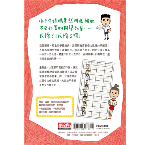 重點是,大家都不喜歡交作業,讓我這個學藝股長當得超挫折!這次顏京亮老師不能來上課,代課老師竟然是牛大偉的媽媽,大家該不會更不想交作業了吧⋯⋯