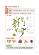 把常見疾病以發病年齡、族群、身體部位分類,每項疾病下,詳細列出疾病症狀、處方劑量、調製方法、用法,並搭配中藥植物與藥材的清楚照片,幫助讀者辨認。