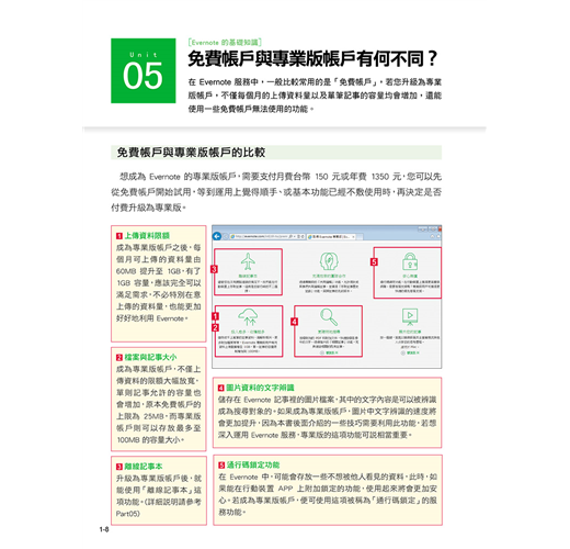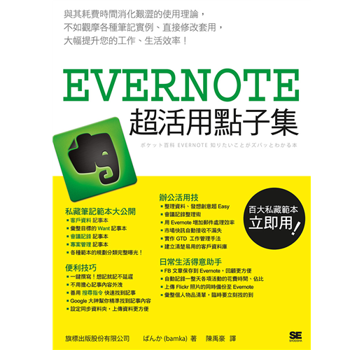 Evernote 是近來非常熱門的雲端記事服務,對於剛接觸 Evernote 的人來說,最大的困擾是「到底可以用 Evernote 來記什麼?」、「怎麼用才可以帶來助益?」市面上不乏 Evernote 相關書籍,不過對於 Evernote 要記什麼?該怎麼用?往往得耗費時間消化艱澀的使用理論,本書直接提供大量記事點子以及現成的筆記範本讓您修改套用,藉由觀摩各種筆記實例,記下來、找的到、隨時派上用場,工作、生活效率必定大幅提升!