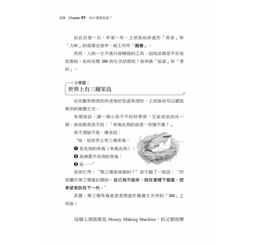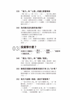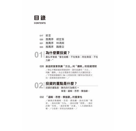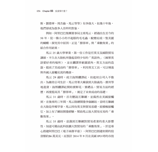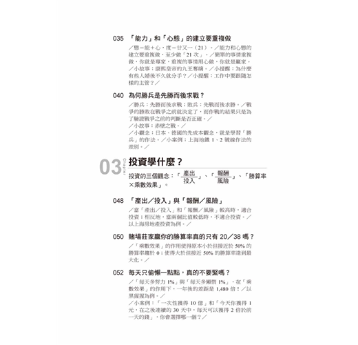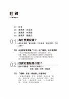 /與其臨淵羨魚,不如退而結網。/想法簡單化後,投資就要認真去執行,不受外界干擾。/上課和投資有何不同?/小故事:新加坡的陽光。/小故事:出來創業的妖精。/