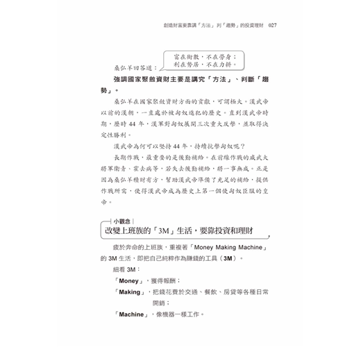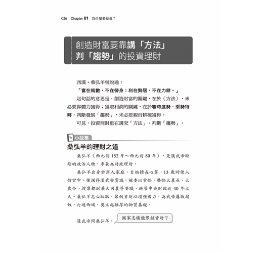 /桑弘羊幫助國家聚斂資財,靠的是講究「方法」、判斷「趨勢」,未必全要靠勞力親耕的方式獲取財富。/不想做被圈養的 3M 上班族和第三種笨鳥的脫貧父母,就要靠投資和理財。/
