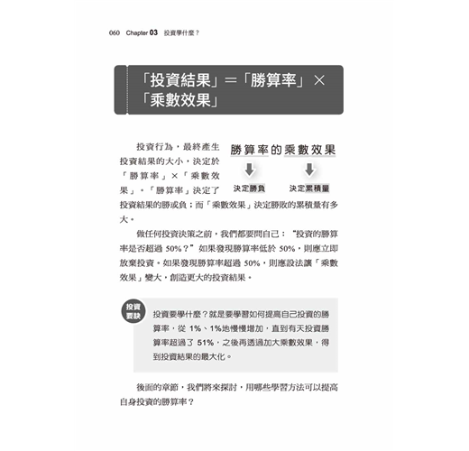 /投資行為,最後產生投資結果的大小,決定於「勝算率」和「乘數效果」的乘積。/