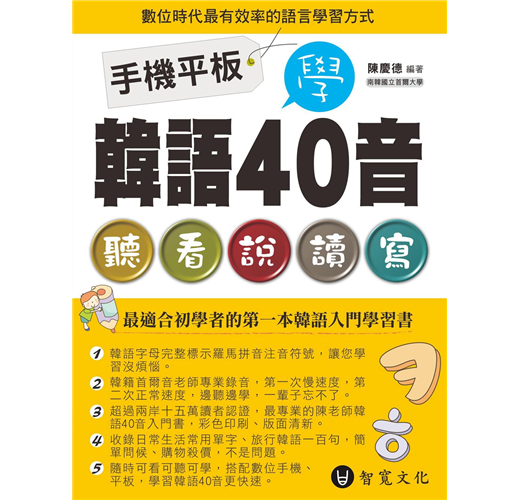 ★全台第一本智慧型裝置學韓語40音,聽、看、說、讀、寫,學習更智慧,一小時搞定韓語40音。
