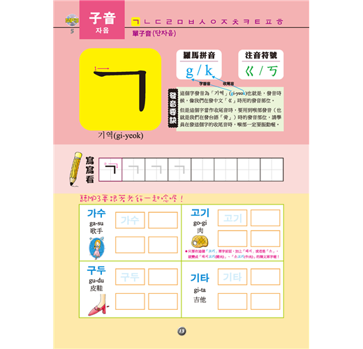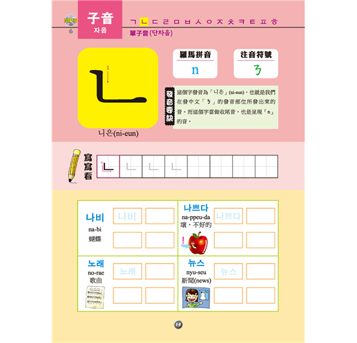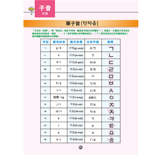 1. 韓語字母完整標示羅馬拼音注音符號,讓您學習沒煩惱。