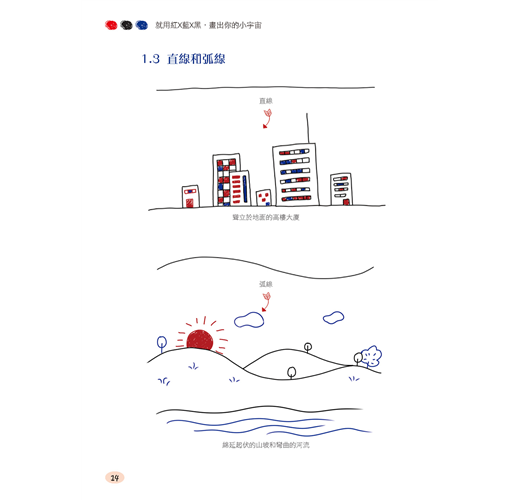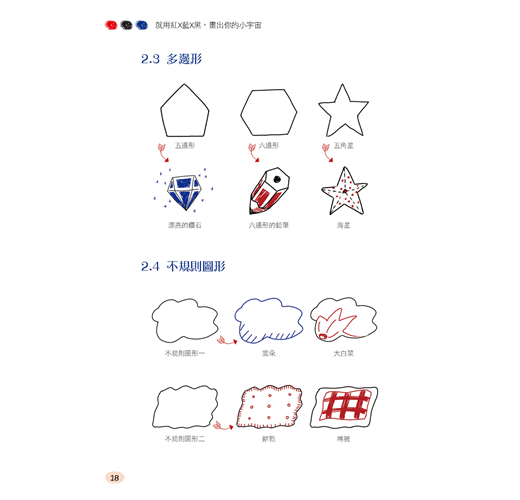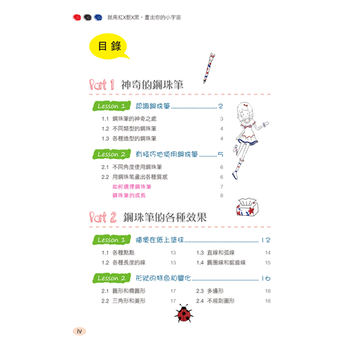 Part 2 透過學習繪製日常生活中經常看到的實例,學會使用三色鋼珠筆畫出各種圖案。從最簡單的圖形開始,逐漸掌握繪畫方法並訓練手感。