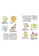 翻開書頁,占去半幅頁面以上的手繪質樸彩圖簡單易懂,給人一種安心感。譬如說,「澤庵醃蘿蔔」這道菜,從曬蘿蔔的方法開始、到米糠醃床的製作手法都仔細解說。每道料理都皆依步驟順序畫出,只要照著做,就能輕鬆做出富含季節感的漬物料理。初學者也能輕鬆上手,為餐桌增添四季風味。除了料理食譜之外,也收錄了「防潮防霉對策」、「秋天通風防蟲對策」等,讓人能在生活中簡單實行的實用小撇步。──日本讀者