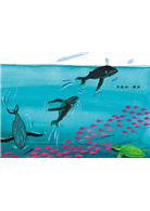 也跟著鯨魚哥哥和姊姊一起飛來飛去、跳來跳去。