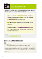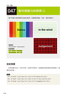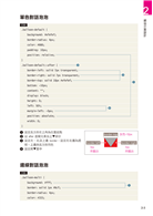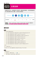 ●本書以功能目的分類整理常用的 CSS3 樣式功能,方便讀者可依據所要完成的工作找到對應的程式碼。