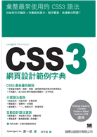 網頁設計者在製作網頁時,有時想要套用某種效果,卻不知道該使用哪個 CSS 語法,或是希望能依製作的效果,查詢適用的語法。本書彙集最新 CSS3 語法,配合清楚的範例圖片及瀏覽器對應,讓您快速運用在製作的網頁上!