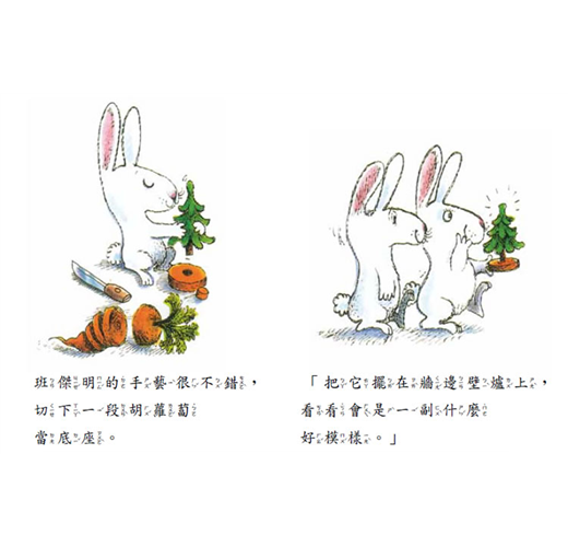 當你和孩子在進行共讀時,可以嘗試兩個方式喔,首先,記得和孩子一起朗讀出聲,跟著作者羅勃˙巴利的押韻詩歌般的文字,讓孩子琅琅上口,愛上這個可愛的故事。其二,本故事的敘述方式,採用的是最受孩子歡迎的傳統方式,讓各種不同的角色輪番上陣,遭遇的卻是相同的事情,孩子對這種方式永不厭倦,共讀時不妨和孩子玩玩接龍的小遊戲,變換各種有趣的結局,開起你們之間獨一無二的故事!