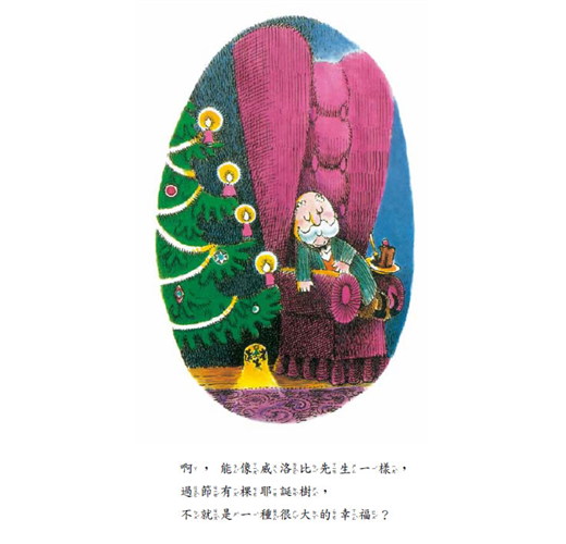 耶誕節除了祝福外,還有別的意義嗎?威洛比先生的耶誕樹,原本只是自己一個人的耶誕樹,卻在無意間,分給了好幾個主人,在一個個家庭間傳遞著,儘管樹愈來愈小,裝飾也不如豪宅裡的大樹,它所帶來的溫暖和歡樂,卻無限延伸。