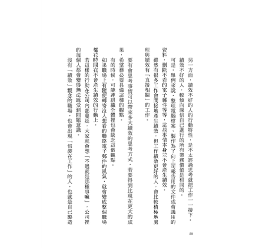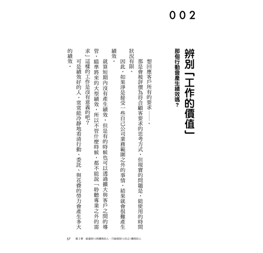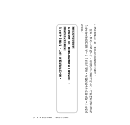 我之前指導過許多商務人士,發現到一件事,就是績效不好的人最常出現的行動特性,是「沒有發現自己正採取不會產生績效的行動」,或是「沒有想要發現這件事」。
