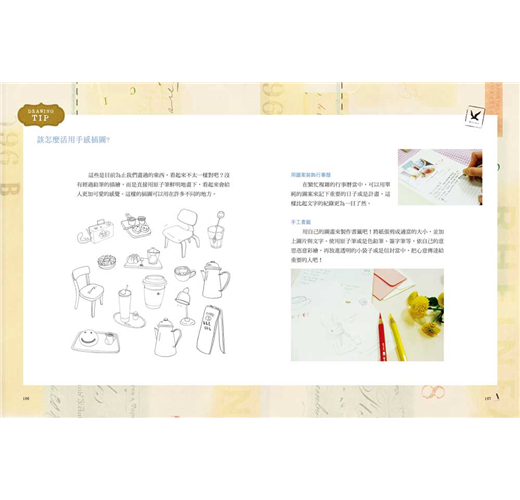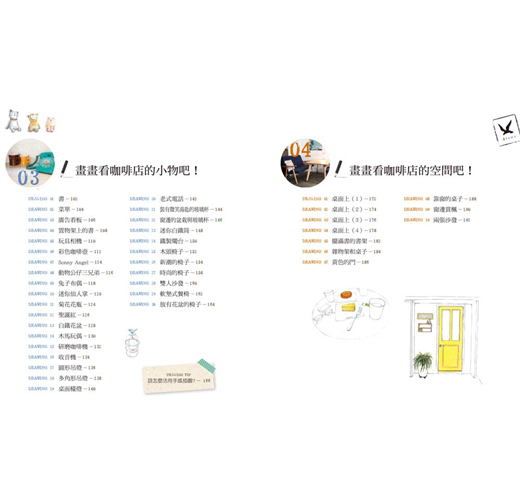 初學者免擔憂,本書詳盡的步驟圖解,讓你看圖跟著老師畫,輕鬆掌握要領。除了細緻的插畫步驟圖外,還有精美咖啡店小物實圖,讓你學畫畫的過程中能更容易融會貫通,馬上上手。