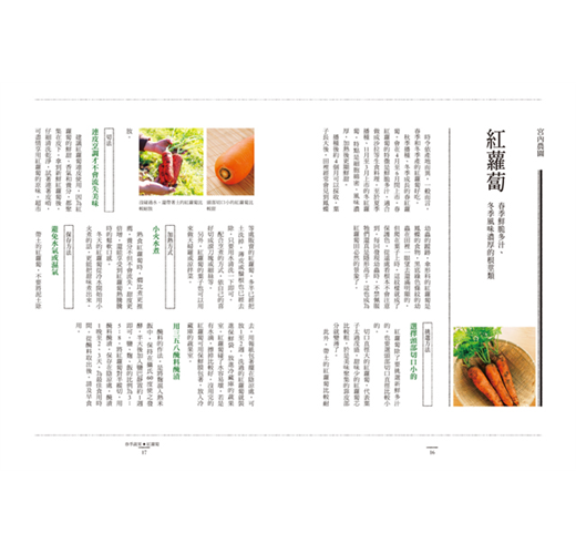 全書跟著季節走,用春夏秋冬,介紹每個季節盛產的蔬菜,不只提供日常食譜,更要教會你如何挑、如何切?是適合燉?還是用燜的好,各種蔬菜的加熱法到保存方式。不說,你不知,學會了,天天都用得上。