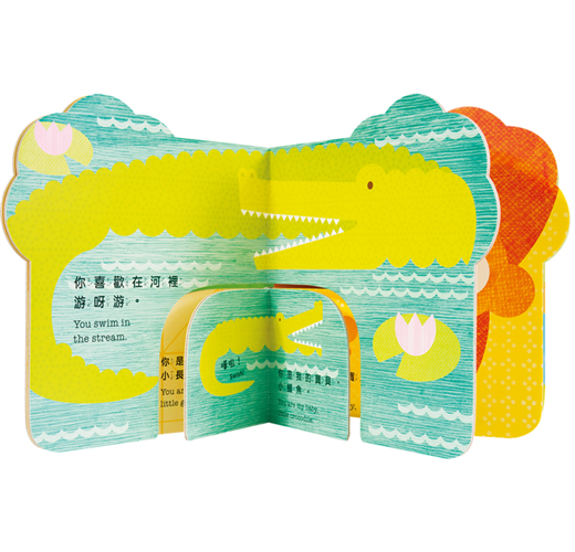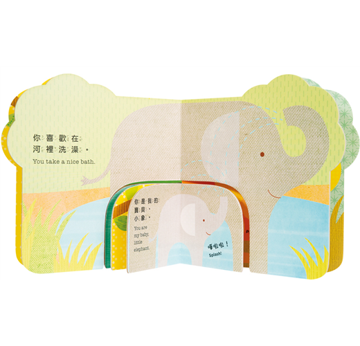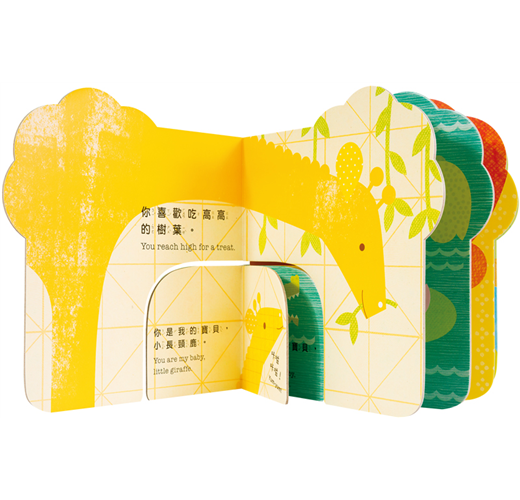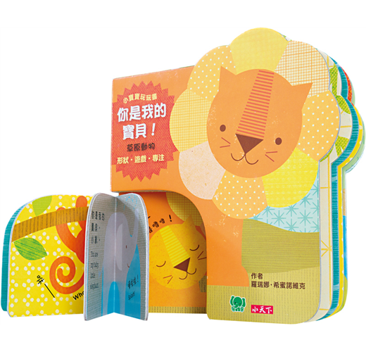 《你是我的寶貝/草原動物》利用刀模設計,將紙板書設計成「書中書」,讓親子一邊唸故事,一邊玩動物配對的遊戲。豐富的圖畫意像讓父母和寶寶在親子共讀時,自然引發出豐富的詞彙,是幼兒五感啟蒙的最佳讀物。