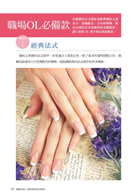 因此,書中將會分享將將自身的經驗,從基本的甲型修剪、基本手部保養到指彩上色來帶領大家入門,希望在健全的觀念下,藉由簡化彩繪方式以及工具的方式,打破美甲難以親近的想法與印象,讓更多女孩可以隨時隨地、隨心所欲地塑造獨具個人風格的指尖風采。