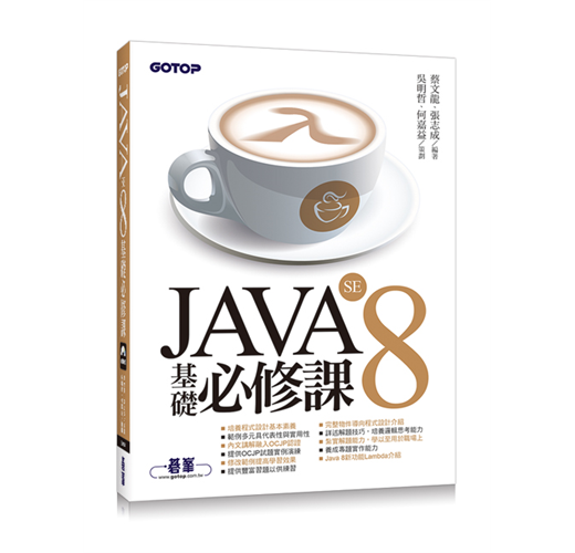 由OCJP(原SCJP)認證講師、科技大學教授程式設計教師以及OCJP認證專家共同編著,針對目前初學者學習程式設計所編寫的入門教材。