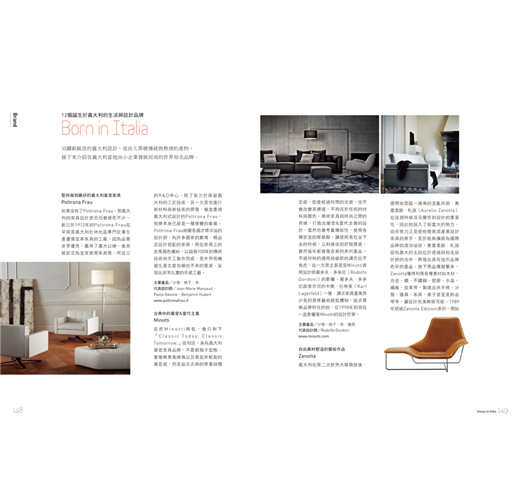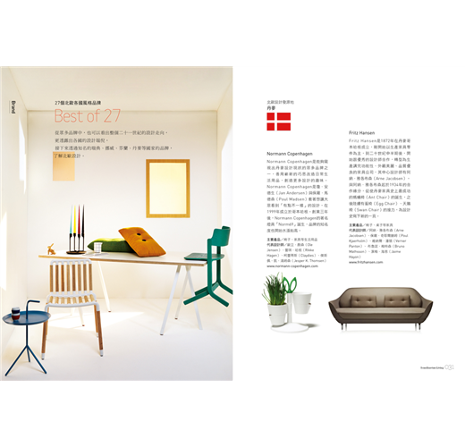 一般居家雜誌不曾嘗試的深度內容,重新彙整各國生活設計,從中帶出設計師和品牌介紹。