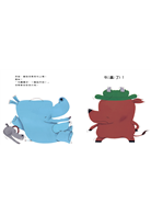首先,由恐龍和大象率先展開比賽。長相威嚴的恐龍本來以為自己贏定了,但是他一看到大象穿著草鞋的模樣,忍不住哈哈大笑起來。結果恐龍輸了,大象贏了。