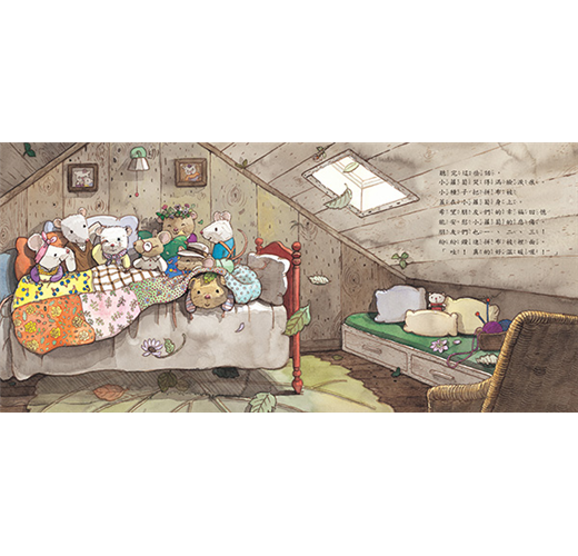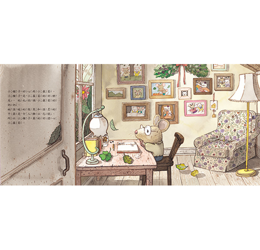 以戲劇化的構圖,逗趣的老鼠造型,生動的表情和肢體語言,來突顯出故事主人翁的情緒張力。本書不但故事精采,圖畫也非常賞心悅目,從室內到室外,給人的感覺都是春天的繁茂!一花一草、一物一事、書香滿溢的桌子、溫馨的掛圖,都讓人覺得春意盎然,溫潤著大小讀者的心。